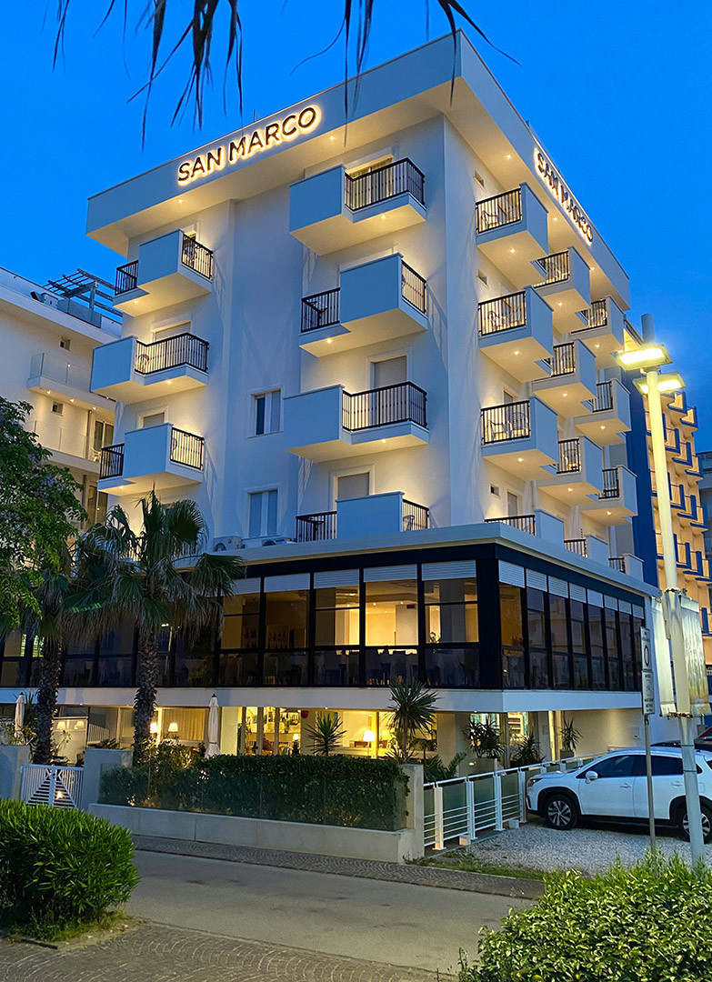 L' Hotel sul mare Riccione San Marco gode di una posizione invidiabile, affacciato direttamente sul mare, a pochi passi dal romantico porticciolo turistico e dal cuore pulsante della città, Viale Ceccarini. L'ideale per sognare ammirando lo splendido litorale, o per dedicarsi a momenti di svago e shopping. Siamo la meta preferita dalle famiglie che desiderano trascorrere una vacanza in tranquillità, lontane dal traffico cittadino, in un ambiente comodo e sicuro anche per i propri figli, vista la prossimità della spiaggia alla nostra struttura.