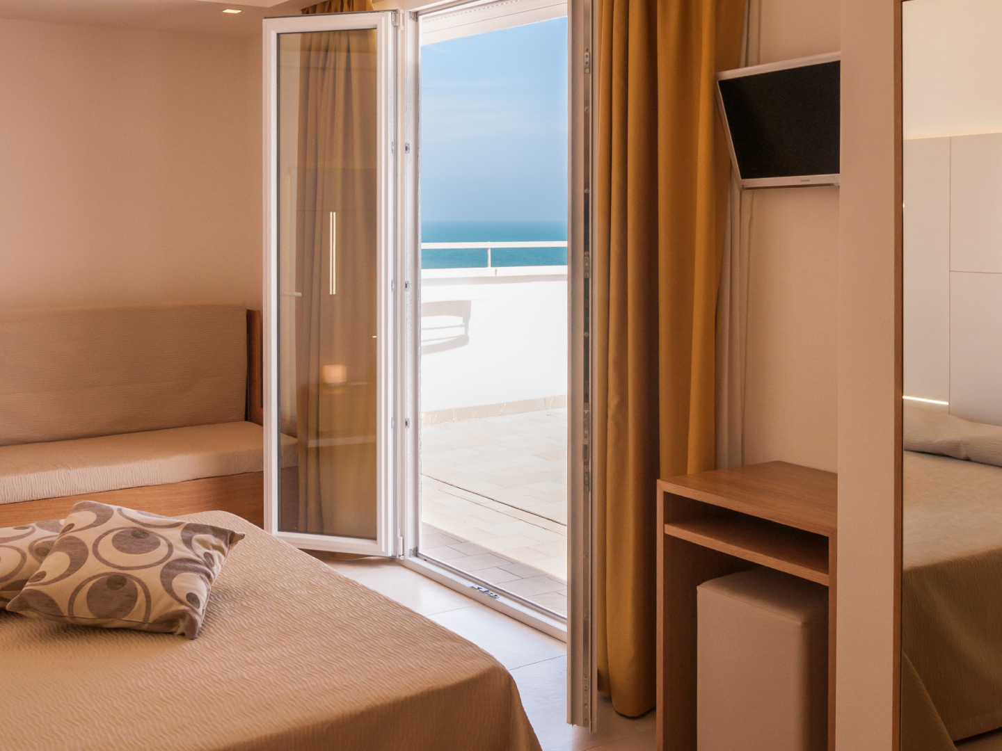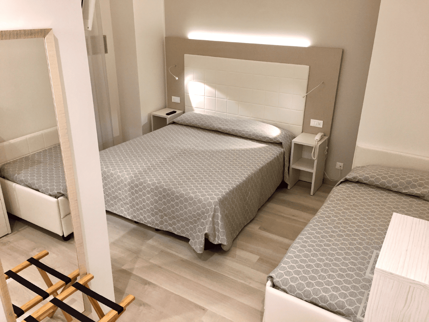 Le camere dell' Hotel 3 Stelle Riccione San Marco sono tutte completamente rinnovate e di varie tipologie in base alle vostre esigenze.